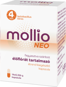 A Mollio Neo szájon át szedhető, speciális (Astarte szabadalommal védett) lactobacillus törzseket tartalmazó, élőflórás kapszula.